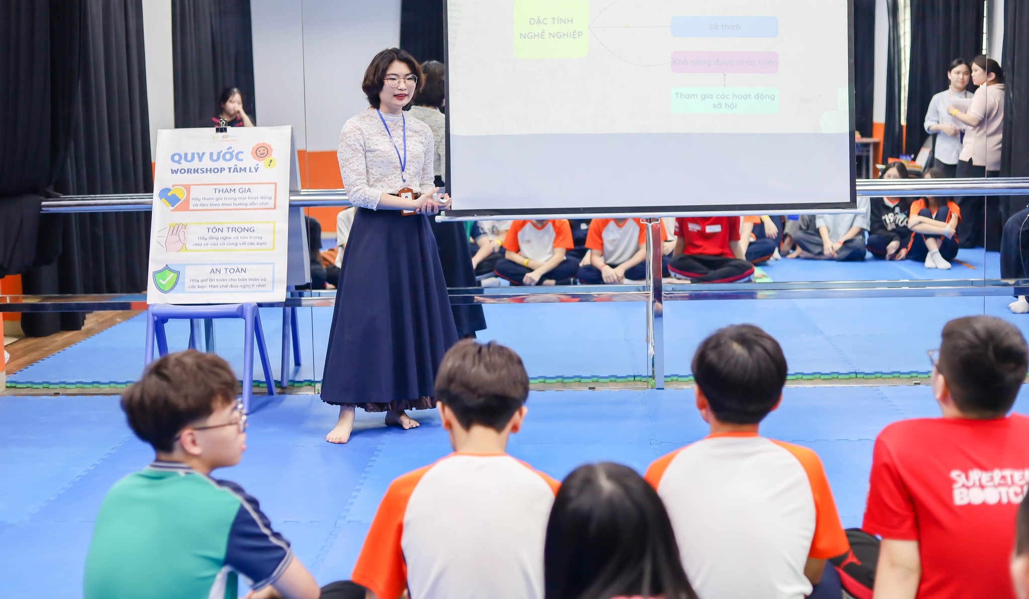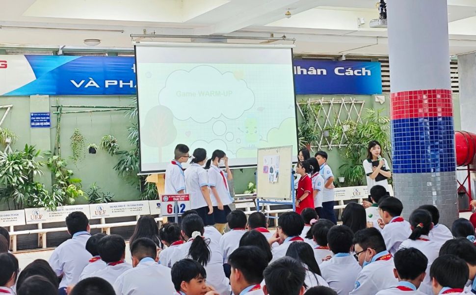 Học sinh rèn luyện kỹ năng thuyết trình và tự tin giao tiếp trước đám đông.